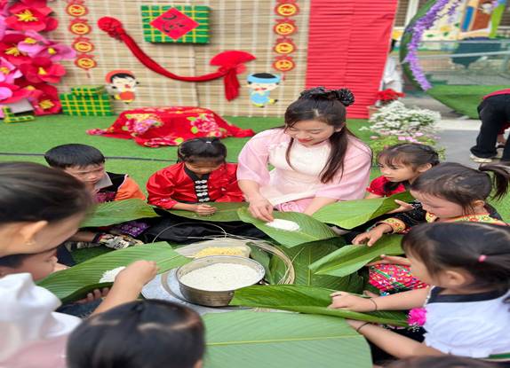 Tạo cơ hội cho trẻ trải nghiệm thực tế thông qua các hoạt động phù hợp với lứa tuổi như: gói bánh, trang trí khu chợ, chơi trò chơi dân gian, biểu diễn văn nghệ.