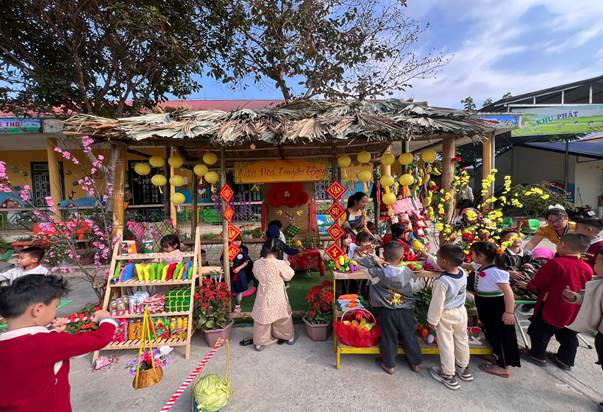 Hoạt động vui chơi – giao lưu: tổ chức trò chơi dân gian, nhảy sạp, ném còn, ném pao, hội xuân nhỏ trong sân trường, biểu diễn văn nghệ chào xuân.
