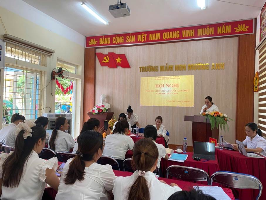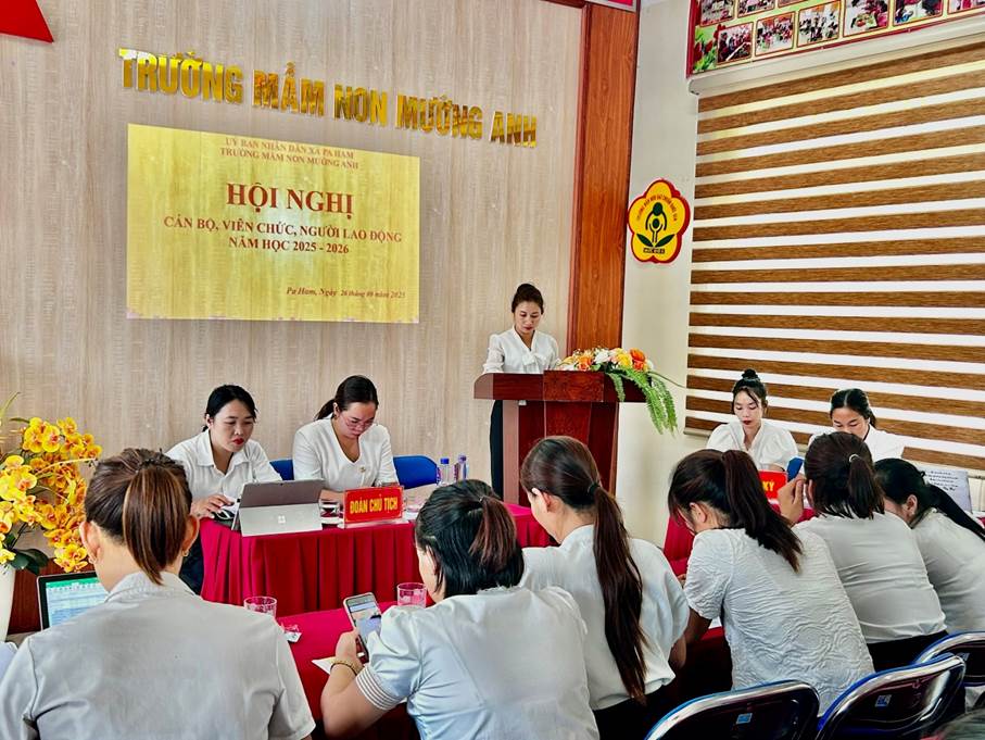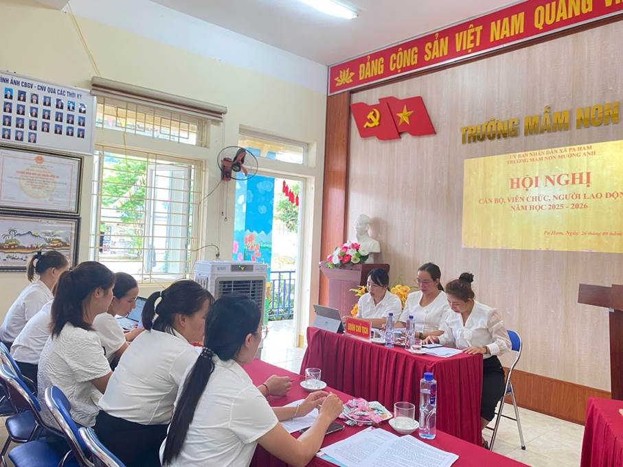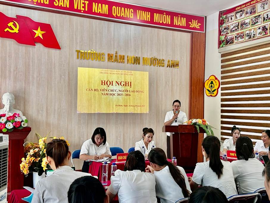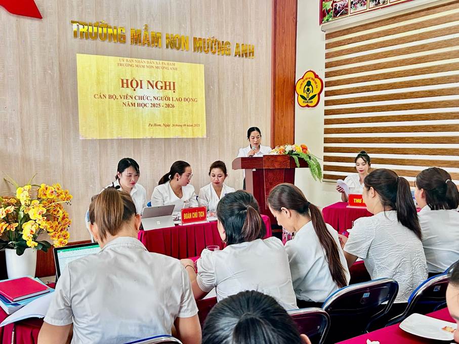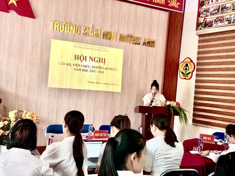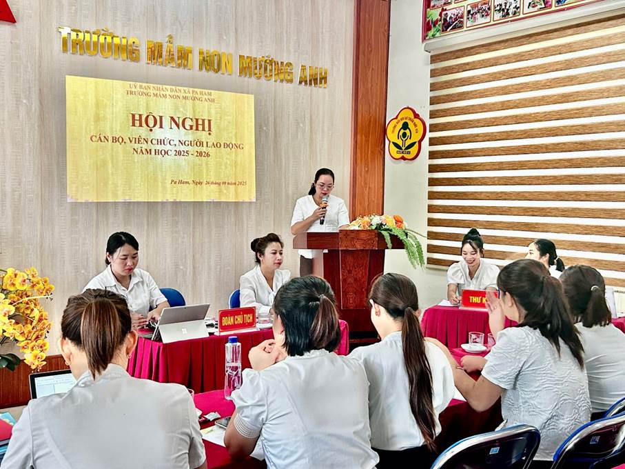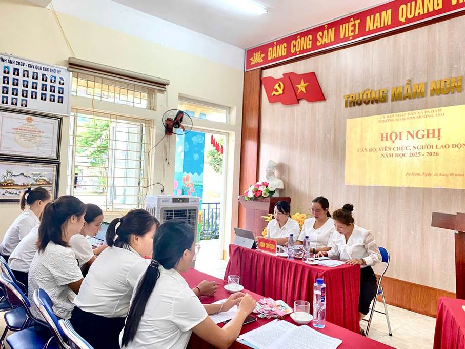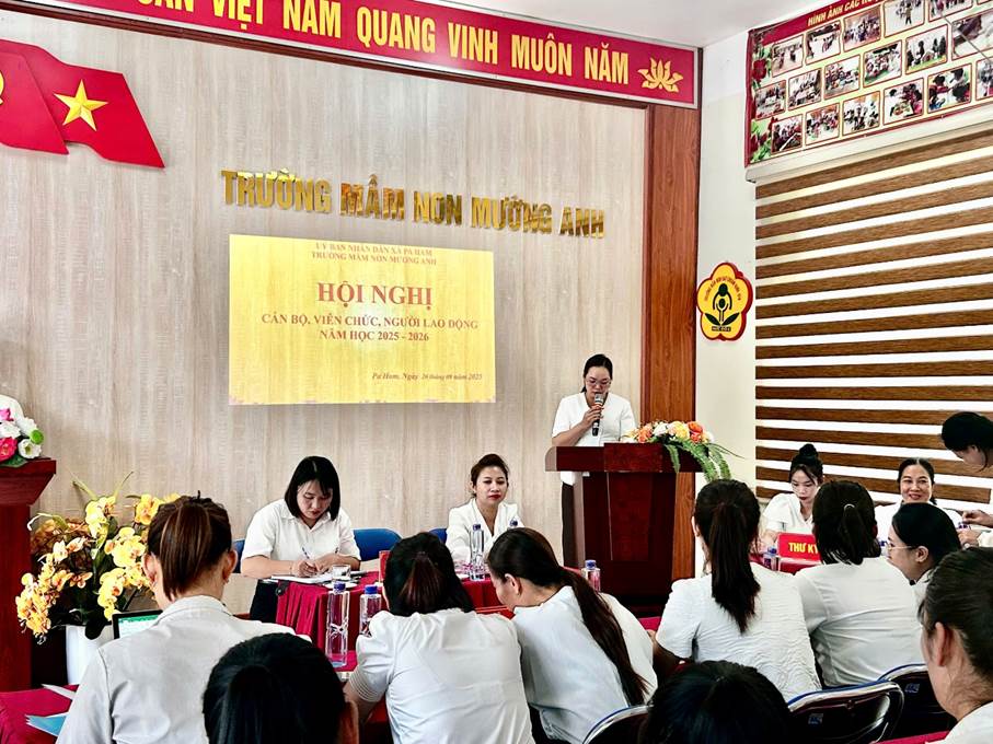 Thực hiện kế hoạch nhiệm vụ năm học 2025 - 2026. Chiều ngày 26 tháng 9 năm 2025 Trường mầm non Mường Anh xã Pa Ham long trọng tổ chức hội nghị Cán bộ, viên chức, người lao động năm học 2025 - 2026.